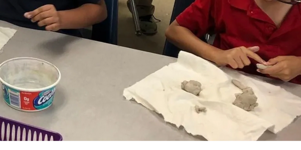 Experimintation happens in the art classroom as well. Here, students created small clay figurines that would then be placed in their own sand gardens.